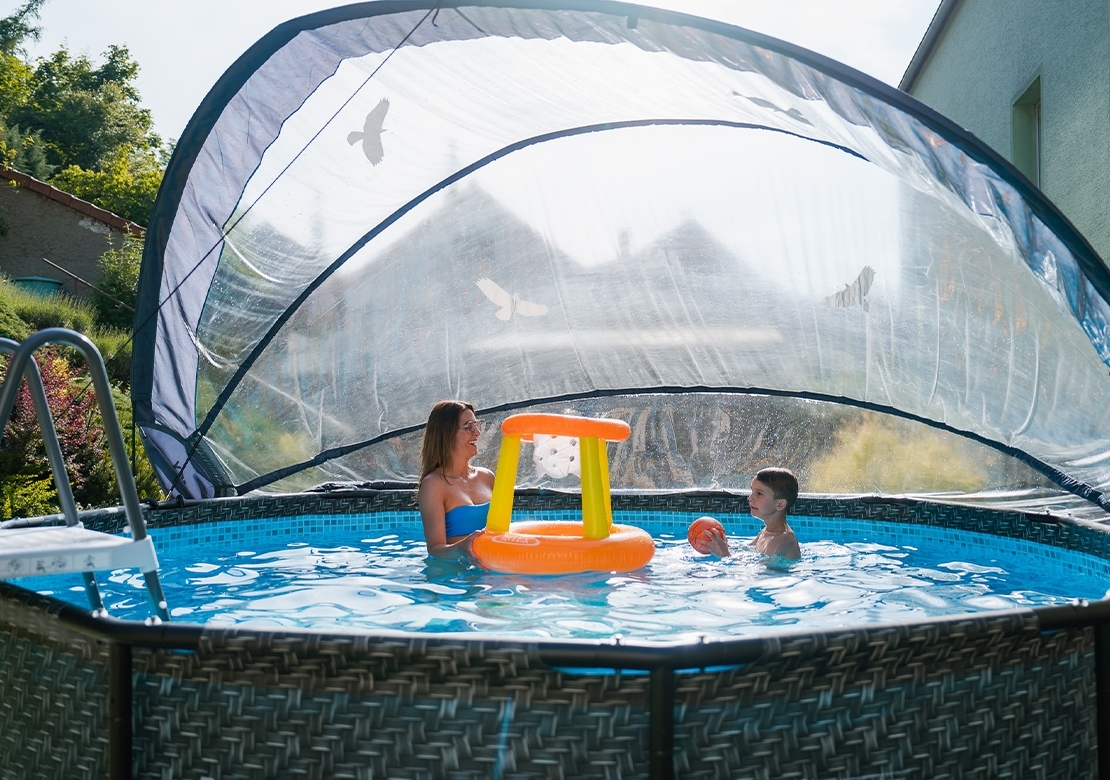 Vďaka skleníkovému efektu a priehľadnému materiálu zastrešenia sa voda prirodzene ohrieva slnečnými lúčmi, čo umožňuje kúpanie aj pri nižších vonkajších teplotách. Zastrešenie pomáha udržať teplotu vody aj cez noc alebo pri ochladení. Výsledkom je dlhšia kúpacia sezóna bez nutnosti dodatočného ohrevu, a teda aj úspora energií. Voda bude príjemne teplá od jari až do jesene a kúpanie si tak užijete naplno.