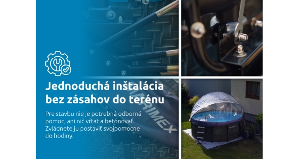 Bez stavebných úpravMontáž je možné vykonať bez akýchkoľvek stavebných úprav. Zastrešenie sa ľahko inštaluje na väčšinu bežných rámových bazénov. Jednoducho sa pripevní k rámu a rozloží. |