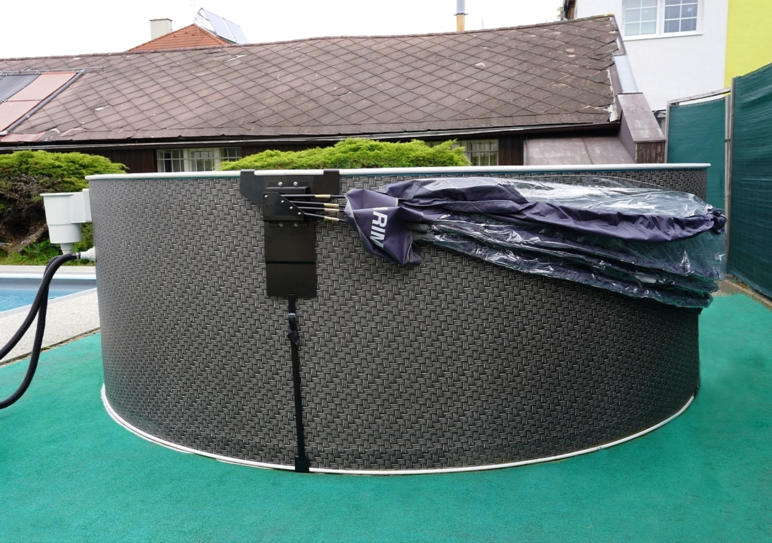 Bez stavebných úpravMontáž sa zaobíde bez akýchkoľvek stavebných úprav. Zastrešenie sa ľahko inštaluje na väčšinu bežných bazénov s kovovou stenou. Iba sa pripevní na okraj bazéna a rozvinie. |