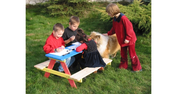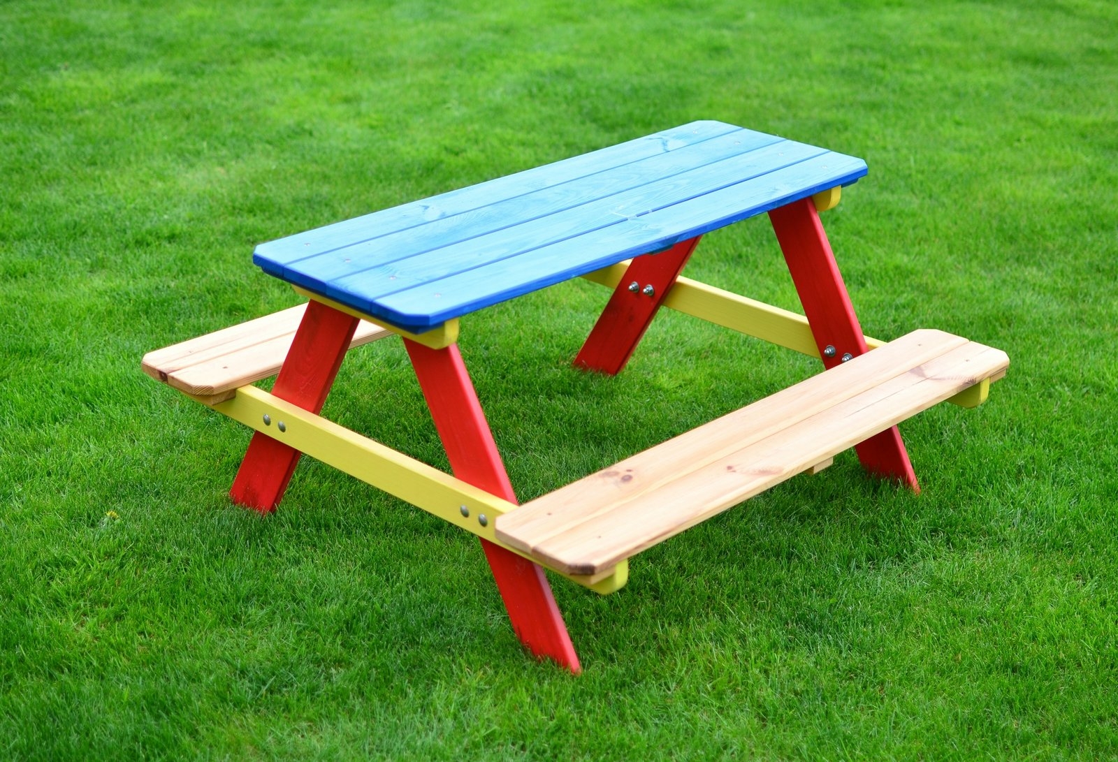 Detská drevená súprava PIKNIK na posedenie alebo na hru pre tých najmenších. Veselé farebné prevedenie.